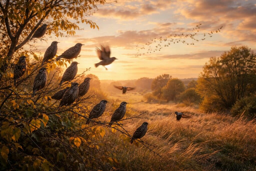 En France, la période de départ des étourneaux s’étend principalement d’octobre à mi-novembre. À mesure que la température diminue et que la nourriture devient rare, il est possible d’observer un pic d’activité migratoire juste avant les premiers froids persistants. Les rassemblements se font alors plus denses et bruyants, indiquant que leur départ est imminent.